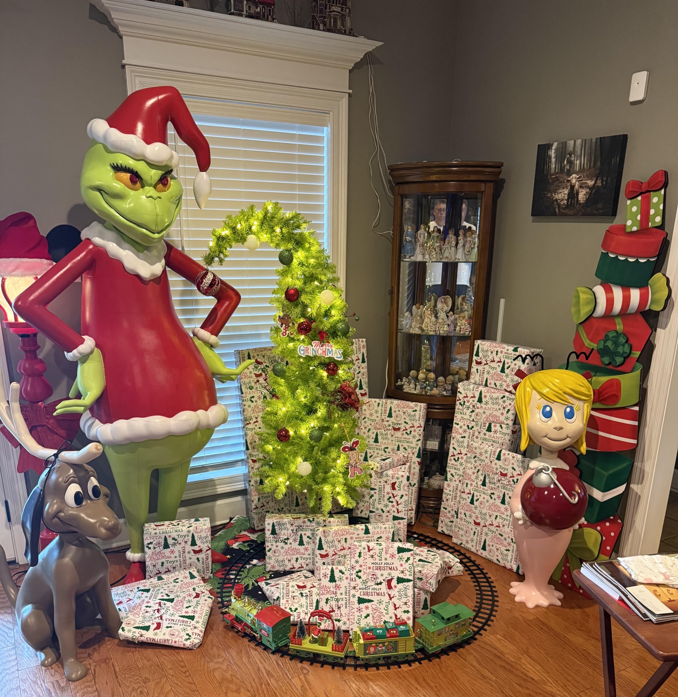 One of his proudest projects? A massive Grinch display that he made after finding a design online. What started as a small Max the dog figure turned into Cindy Lou Who, then finally the Grinch himself—who ended up being over six feet tall.